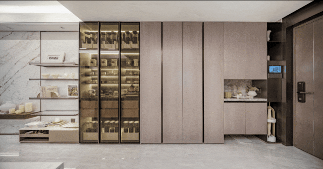 定制更适合东方家庭的幸福聪慧厨房,厨房、餐厅、客堂三大空间联通。